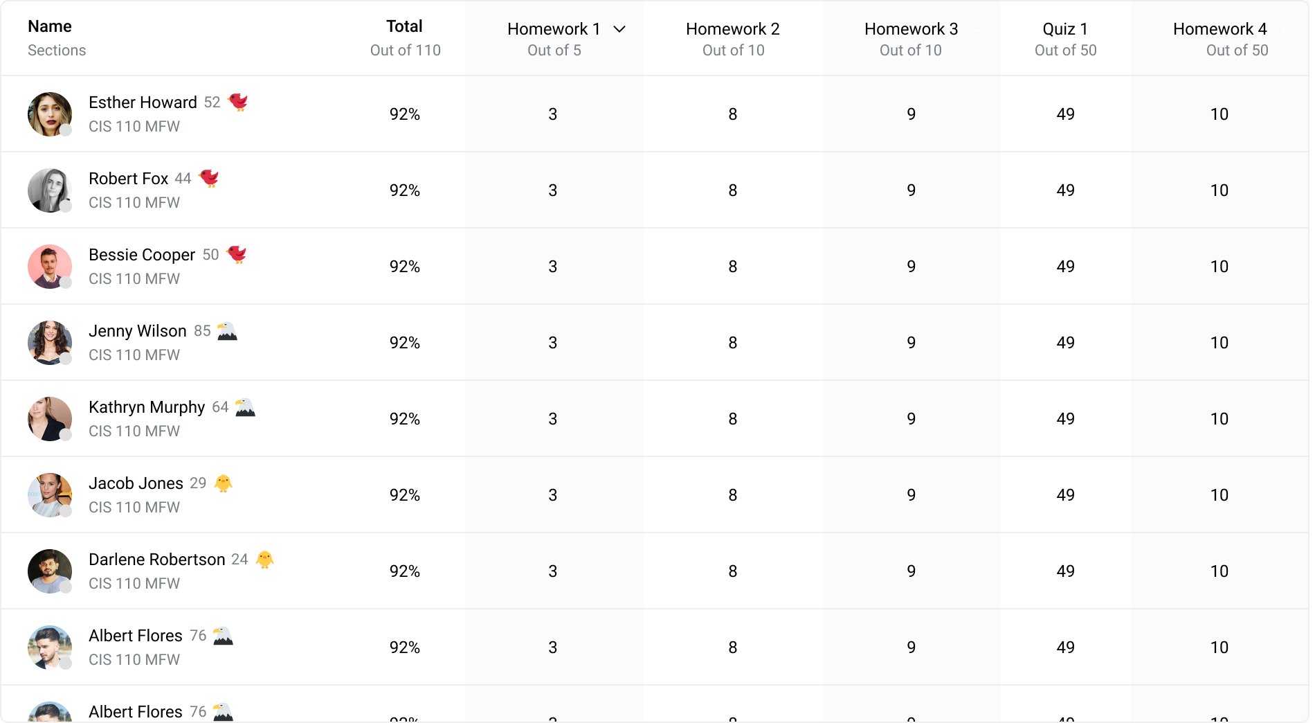 View class engagement trends across time with our built-in graphs and visualizations. Access granular data on each student in your course.