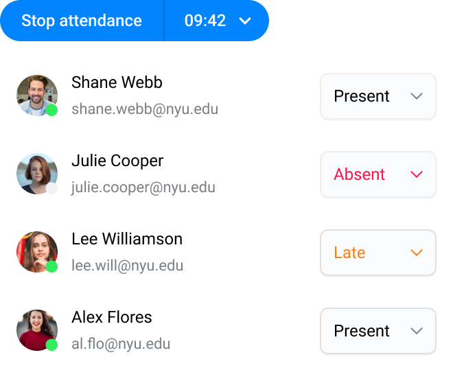 Take attendance in one click -- our proprietary technology ensures that students cannot fake their attendance without physically being present.