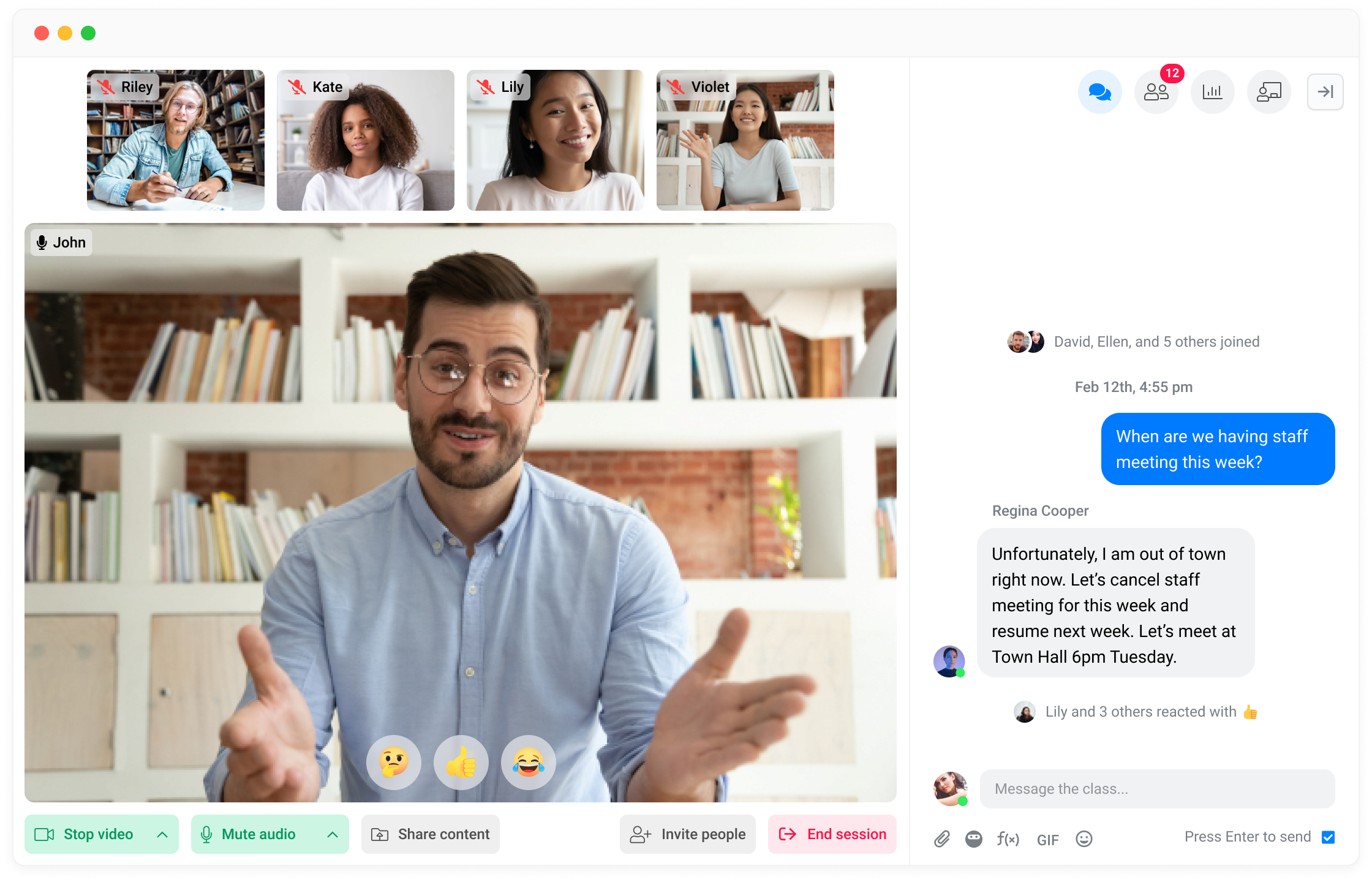 Live Sessions work with classes of all sizes, from small 10-student seminars, to 2,000-student intro lectures.